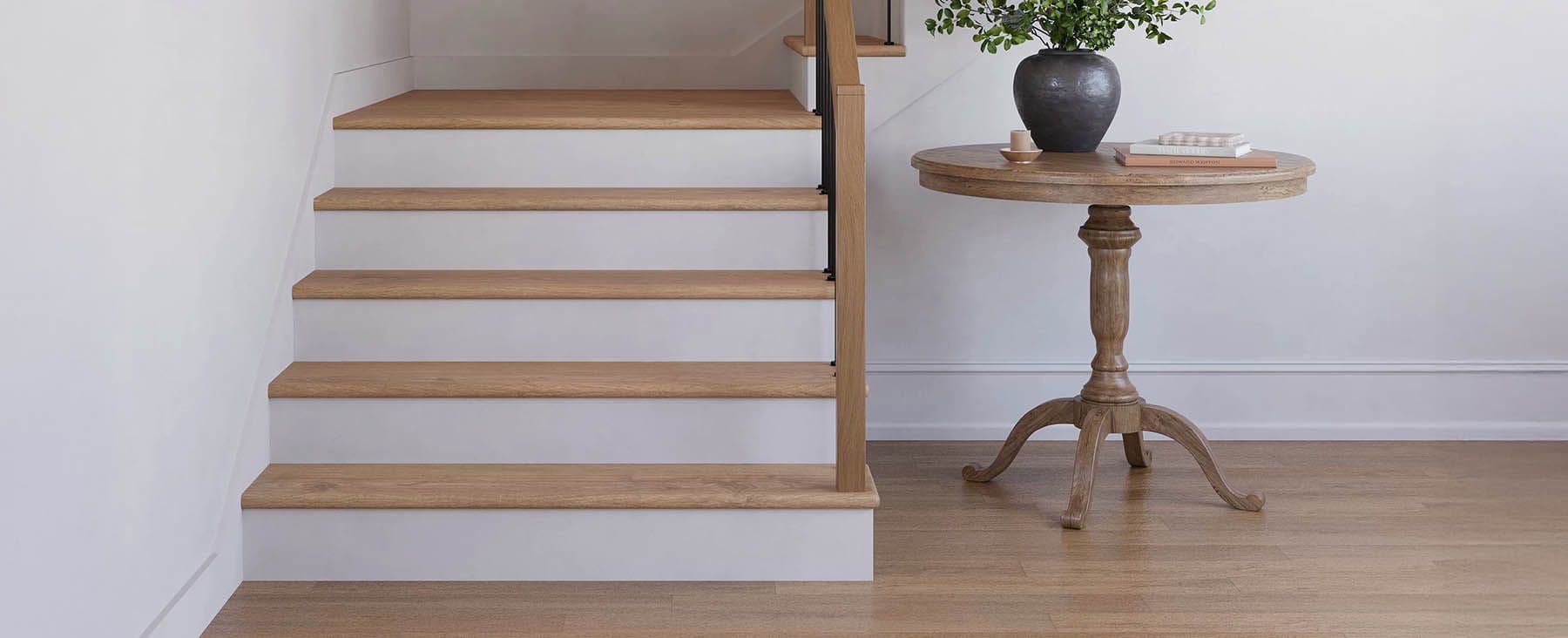 If your home has a staircase, don’t forget to include finished color-coordinated stair treads in your flooring plan. Whether you need vinyl or hardwood steps and risers, it’s one of those small upgrades that makes a big visual impact — and with CALI, it’s easy to get it right.
