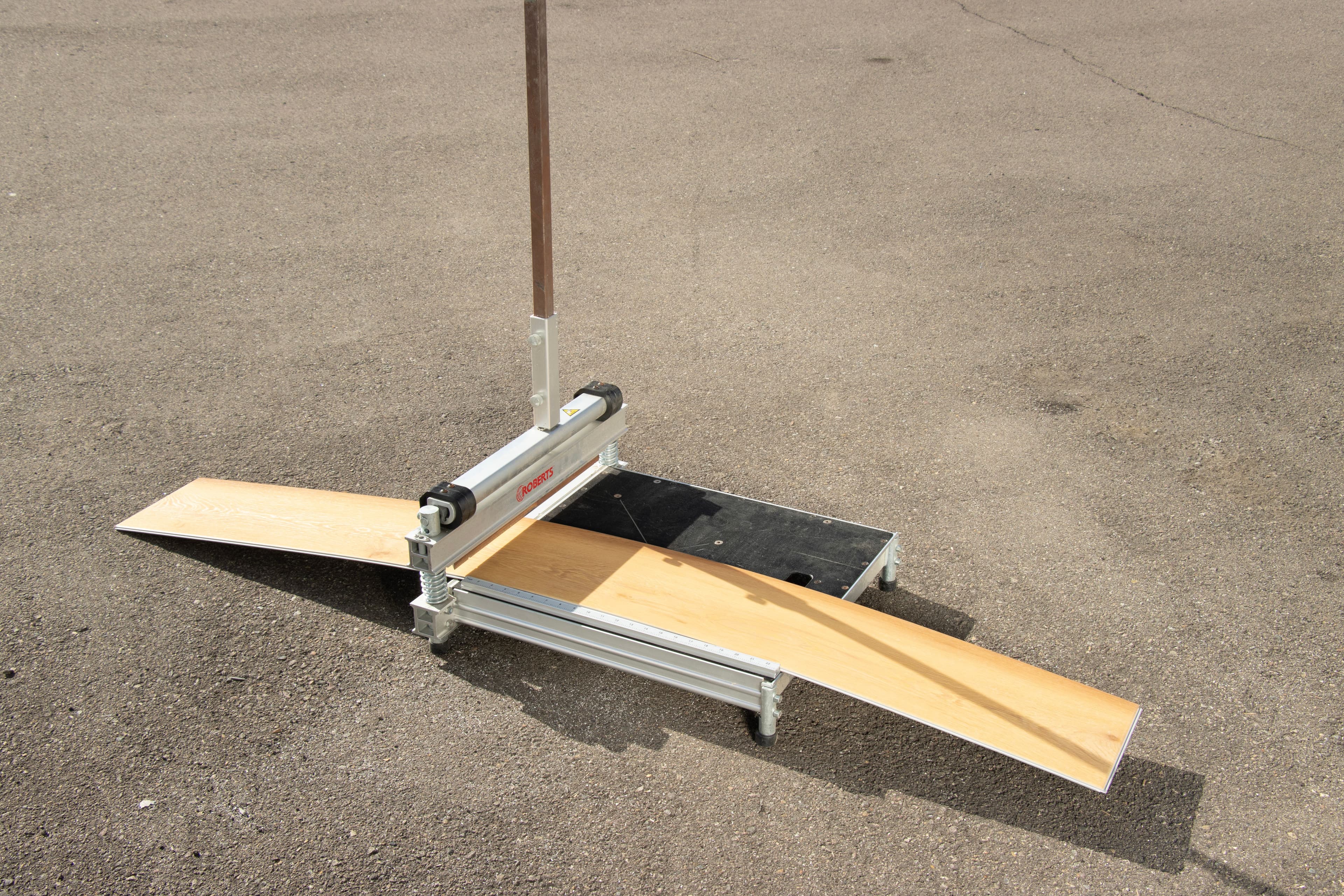 Description: A guillotine is a manual tool specifically designed for cutting flooring materials like laminate, vinyl, and engineered wood. It offers a clean and straight cut with minimal effort. This cutter is particularly advantageous for indoor use as it operates quietly and produces no dust, unlike many power saws. It's ideal for precise, straight-edged cuts and requires less setup time, making it an efficient tool for flooring installations.