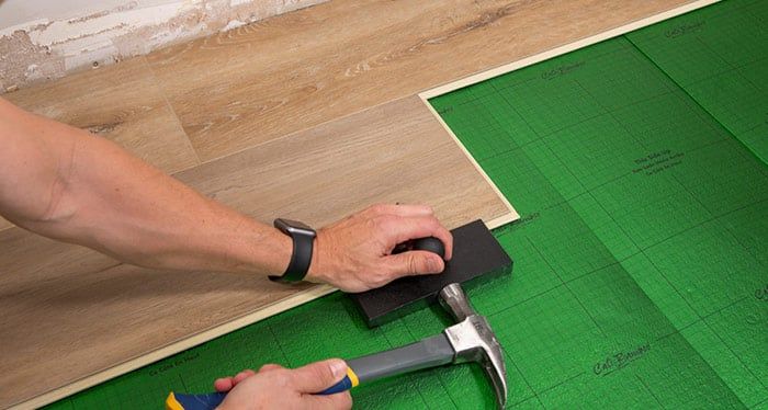 Make sure both planks lay flat afterwards and that all seams are tight. Use of a tapping block along the long side of the planks may help to ensure secure engagement. Continue installing the rest of the planks of this row.