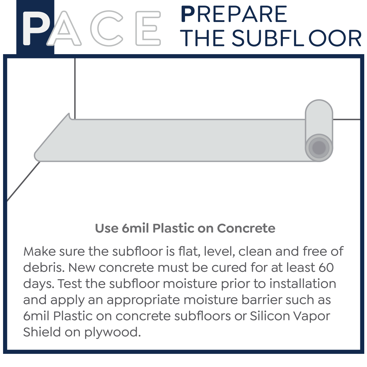 - The subfloor must be clean = Thoroughly swept and free of all debris
