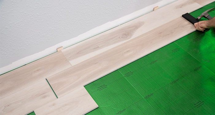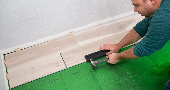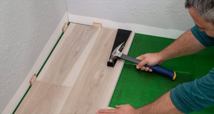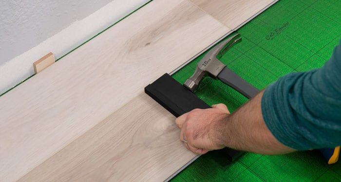 Use a tapping block and hammer to ensure engagement along the length of the plank . Avoid excessive force as it will cause the plank seams to peak. Any gapping can affect the whole floor, so you want to make sure to ensure a tight fit for every plank.
