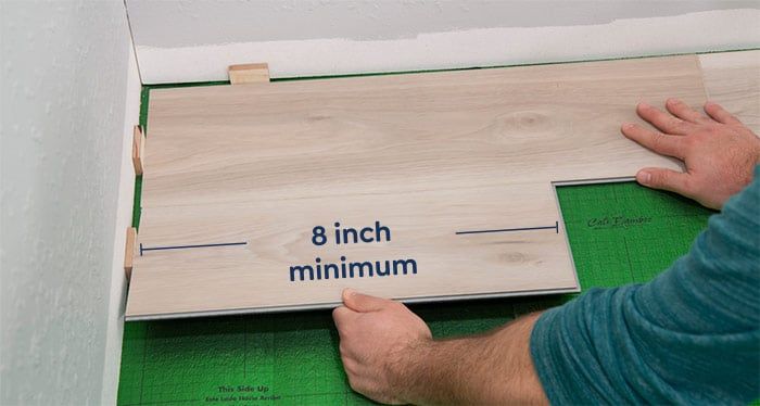 If the cut plank is at least 8” in length, it can be used as a starter piece in your next row. When laying the next row and future rows, make sure that there is at least 8” between the plank end joints on adjacent rows. Avoid an “H” pattern by varying the size of your starter piece. For a natural look rows and patterns should be staggered.
