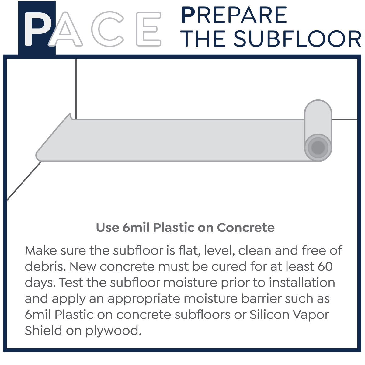 - The subfloor must be clean = Thoroughly swept and free of all debris