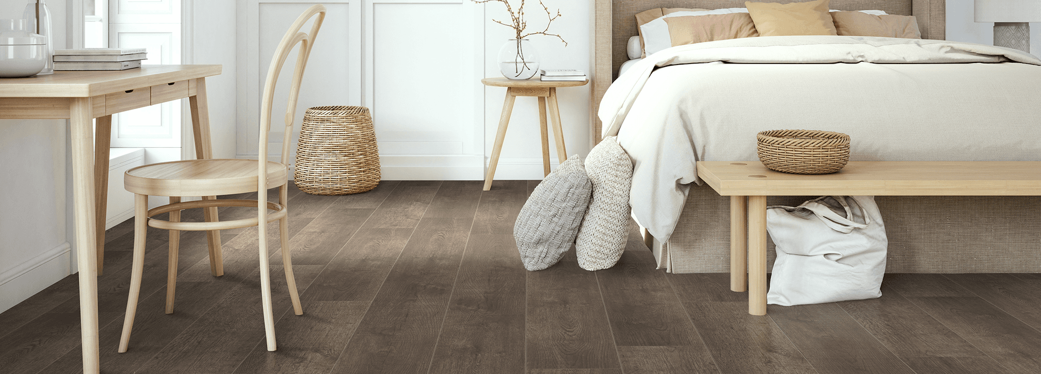The bedroom is also a great place for a material like vinyl since it can be very comfortable underfoot and comes in a variety of looks to match everyone’s style. Plus, vinyl with a built-in underlayment provides sound insulation which can help keep the room quiet for a great night’s sleep!